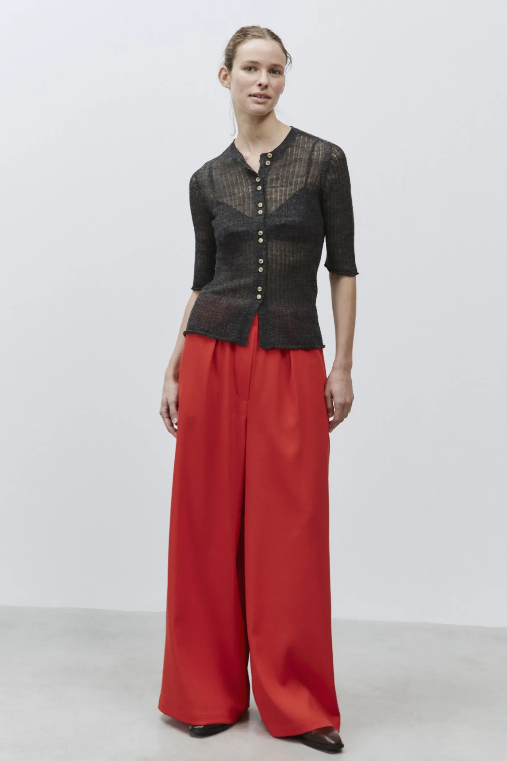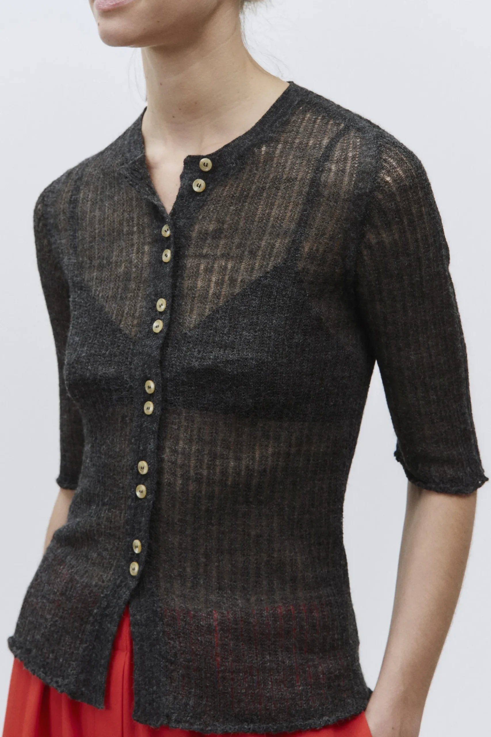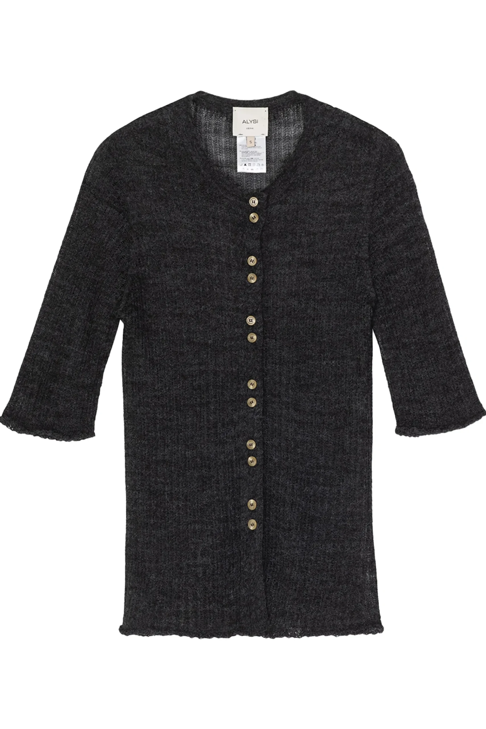 Made from a blend of fine merino wool, this ribbed cardigan boasts a slim fit and 3/4 sleeves for a sophisticated silhouette. Contrasting resin buttons add a touch of elegance, while the crew neck exudes timeless style. Composition: 50% Acrylic / 35% Merino Wool / 15% Viscose Care instructions: Refer to the care label attached to the garment. The model is 180cm and wears size 42.