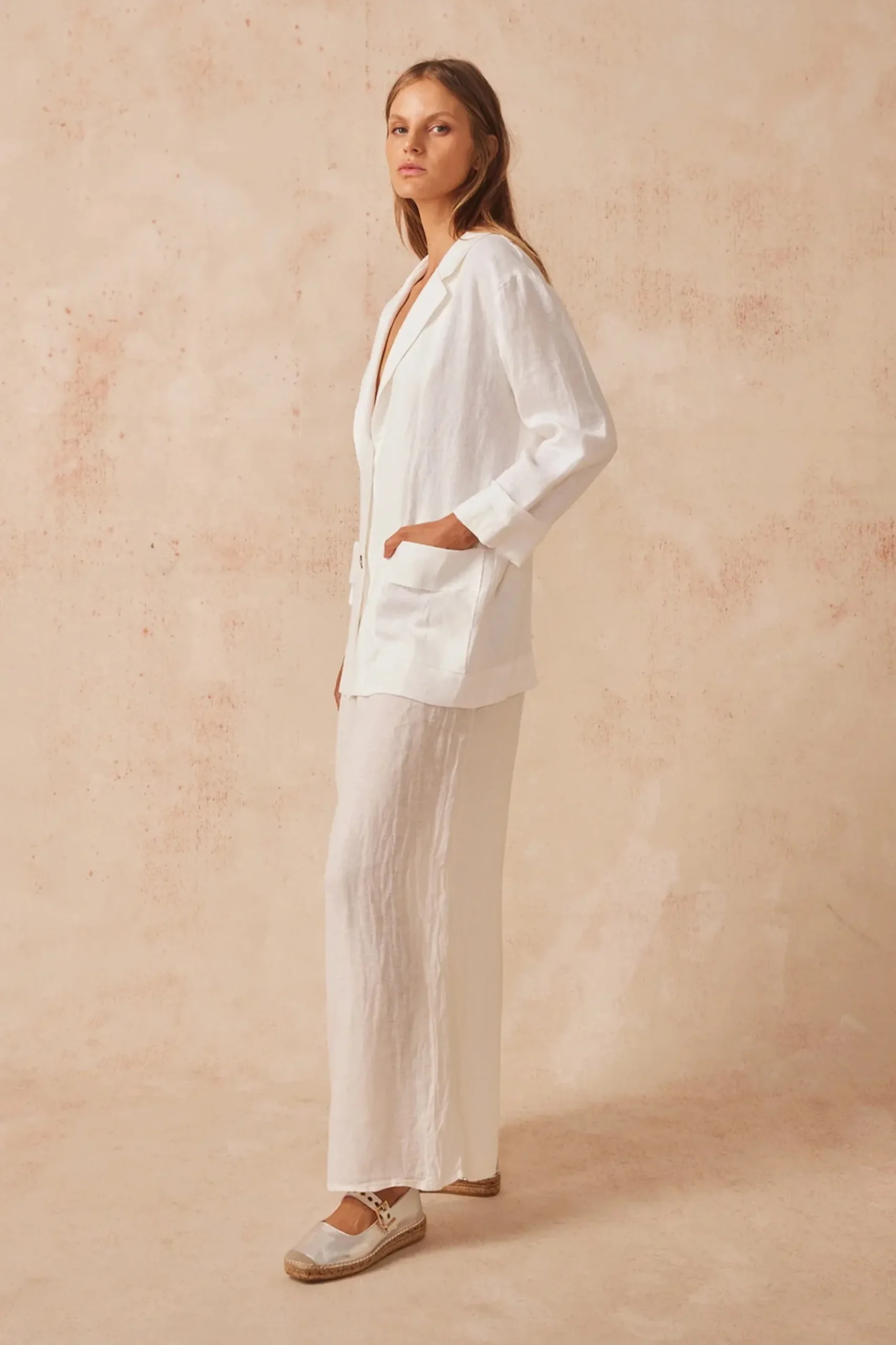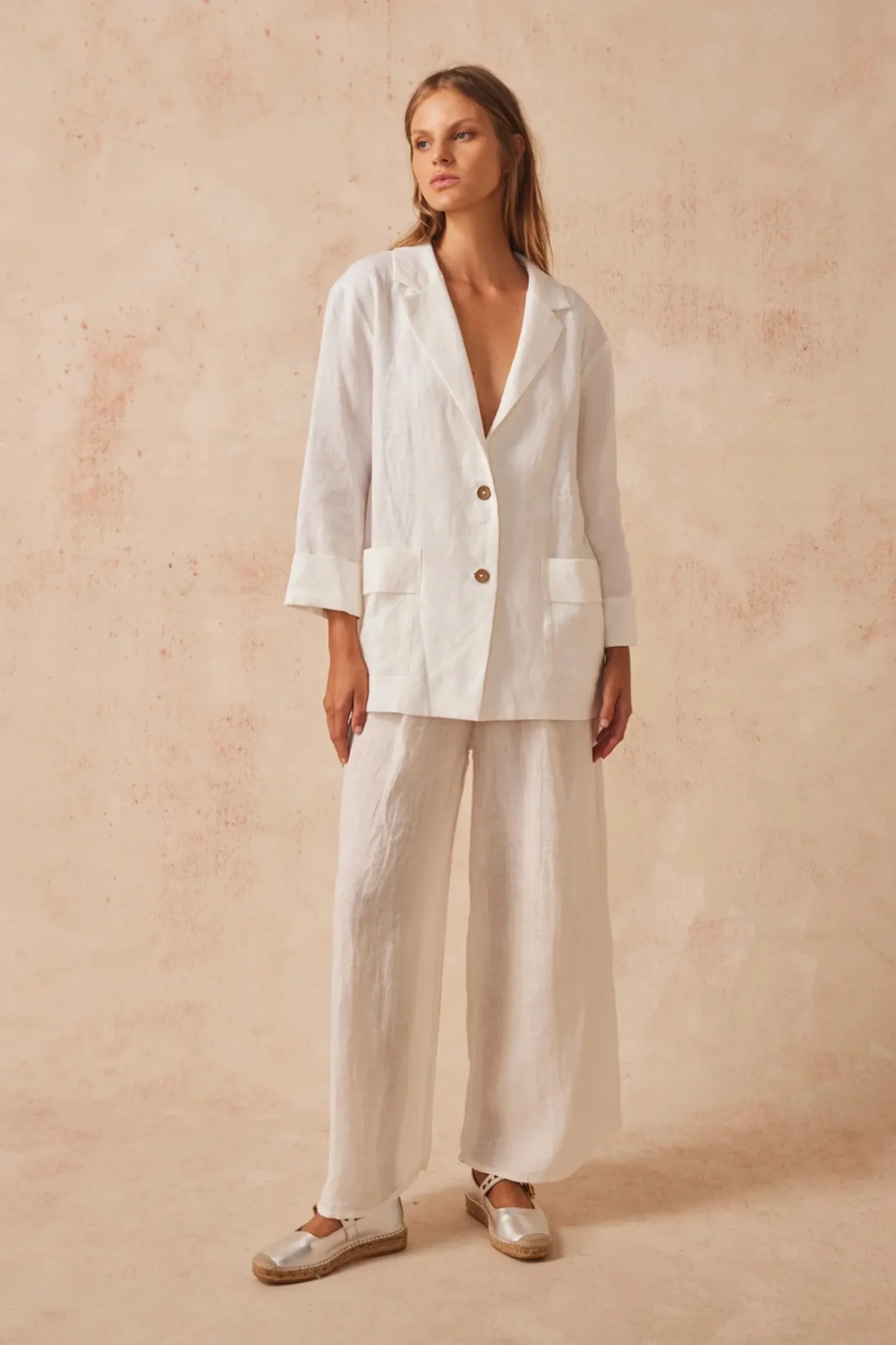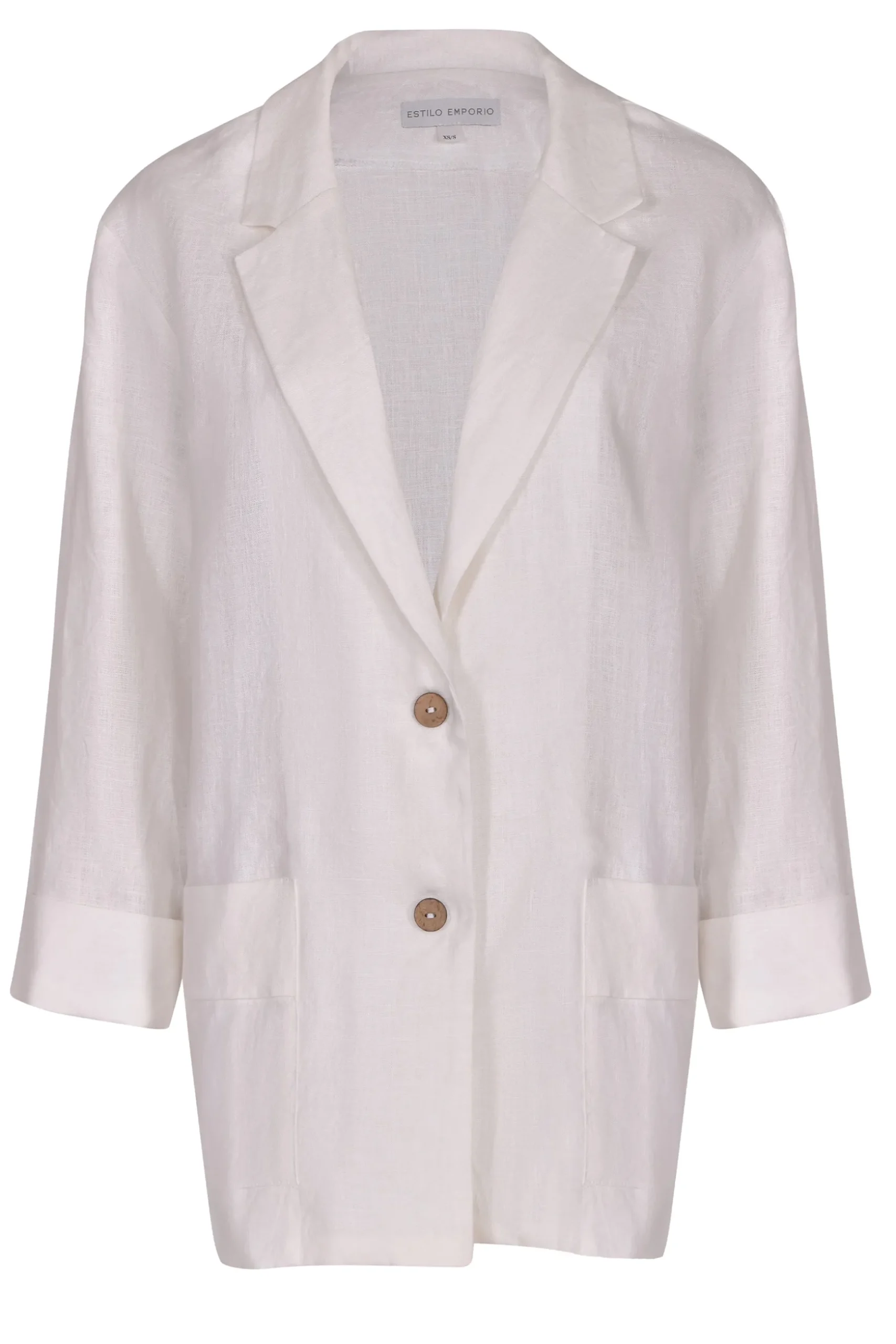 Cut from linen for an airy, lightweight feel, ideal for Summer, the Balth Blazer features a relaxed shape with slim notched lapels for a modern, casual style. Single-breasted design with wooden button fastening for a natural, refined touch. Includes patch pockets, blending functionality with style Composition: 100% Linen Care instructions: Refer to the care label attached to garment for detailed washing instructions. The model is size 8AU and wears Estilo Emporio size XS/S. Exclusively made in Positano, Italy.