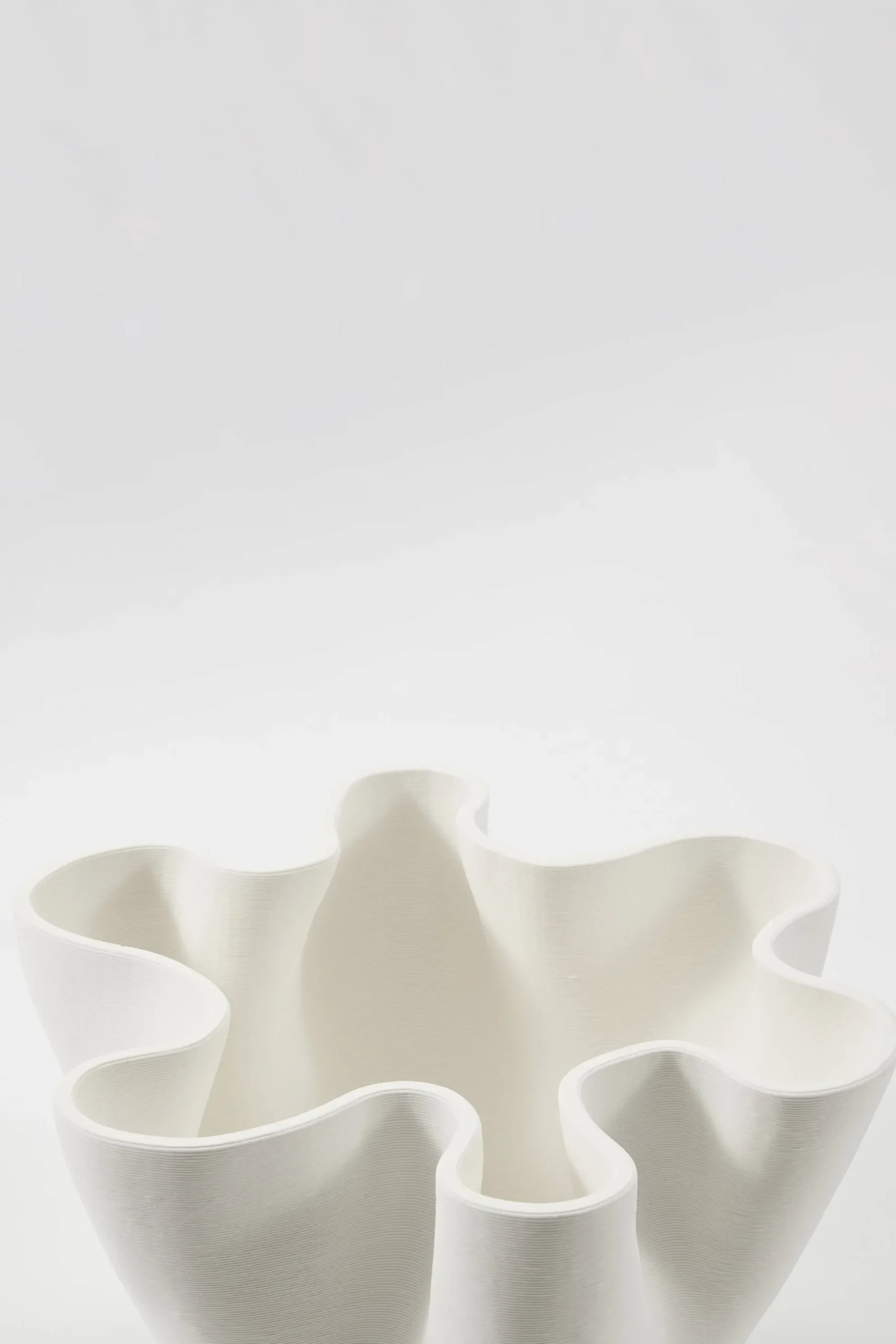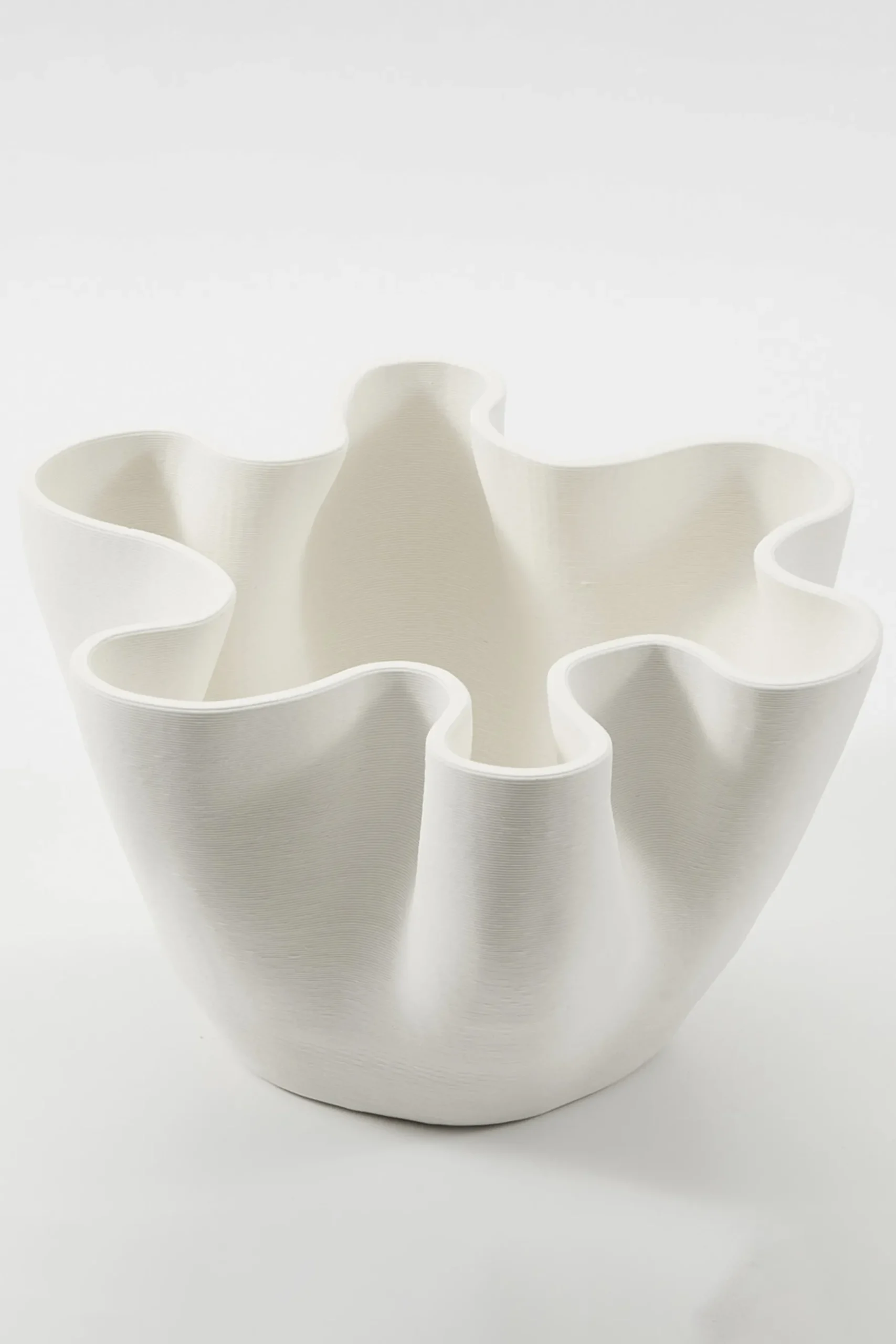 Spectacular is the best way to describe this stunning, generous bowl with its soft, billowy curves. Unique 3D printed ceramic bowl with hand finishing. Dimensions: 26cm height x 45cm width x 45cm depth Care instructions: This bowl is NOT watertight. We suggest using a watertight vessel inside for your arrangements.