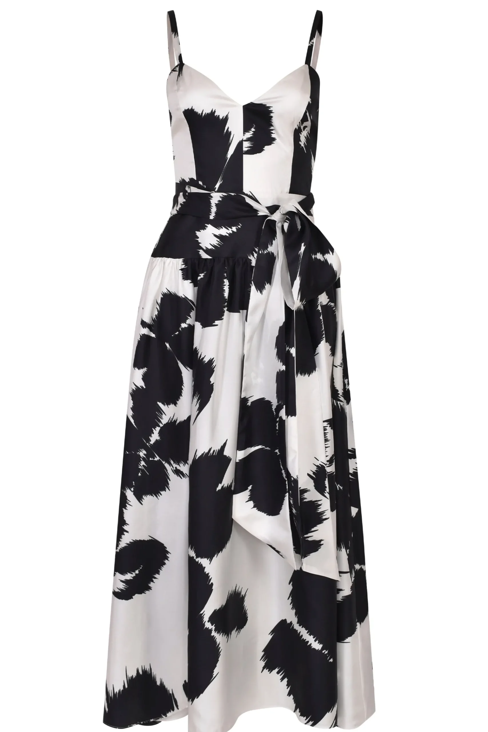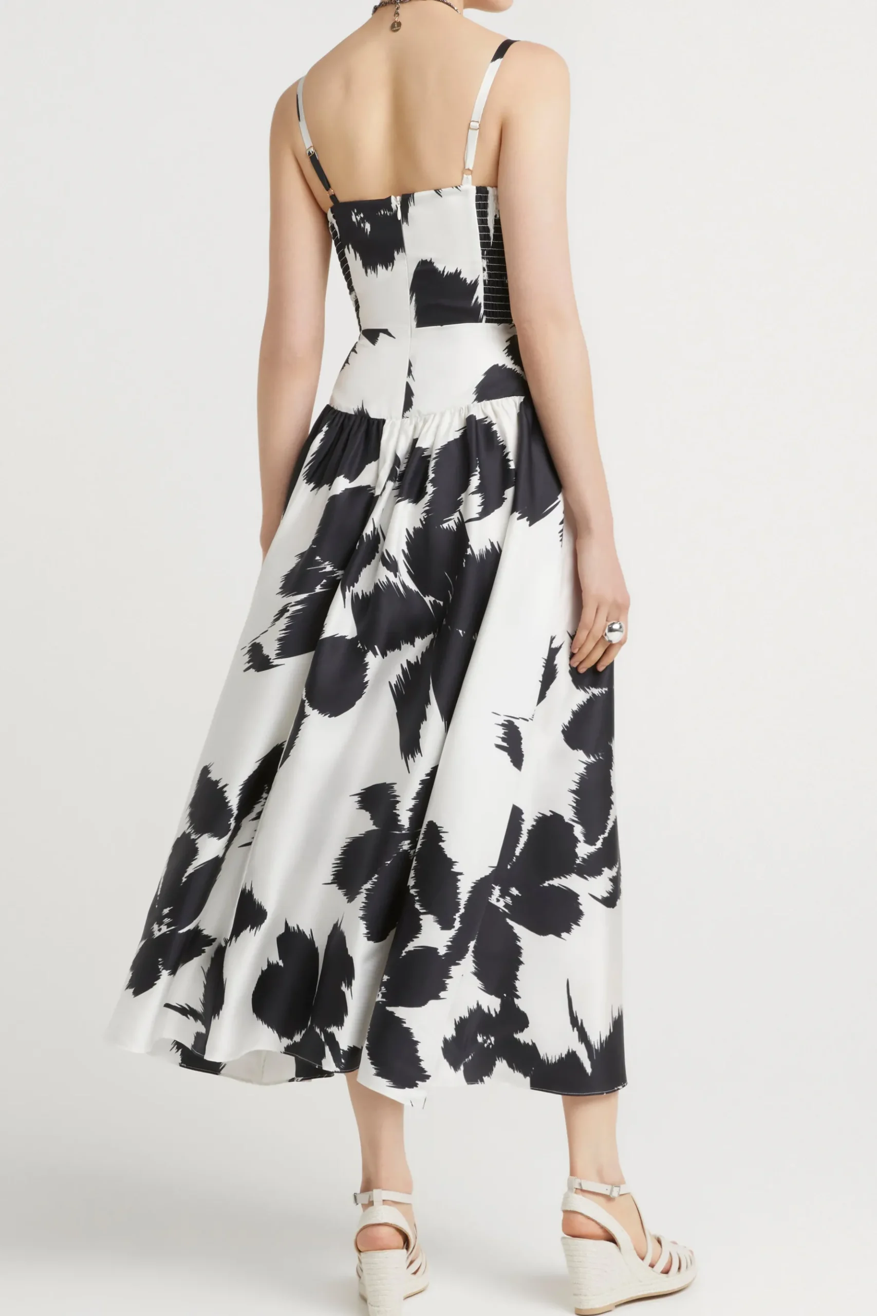 |Sweetheart neckline |Front bodice princess seams |Gathered skirt into a basque seam |Black and white print |Adjustable straps |Shirred side back panel Composition 100% Silk Twill Care Dry clean Studio model is 177cm tall and wears a AU Size 8 / Small