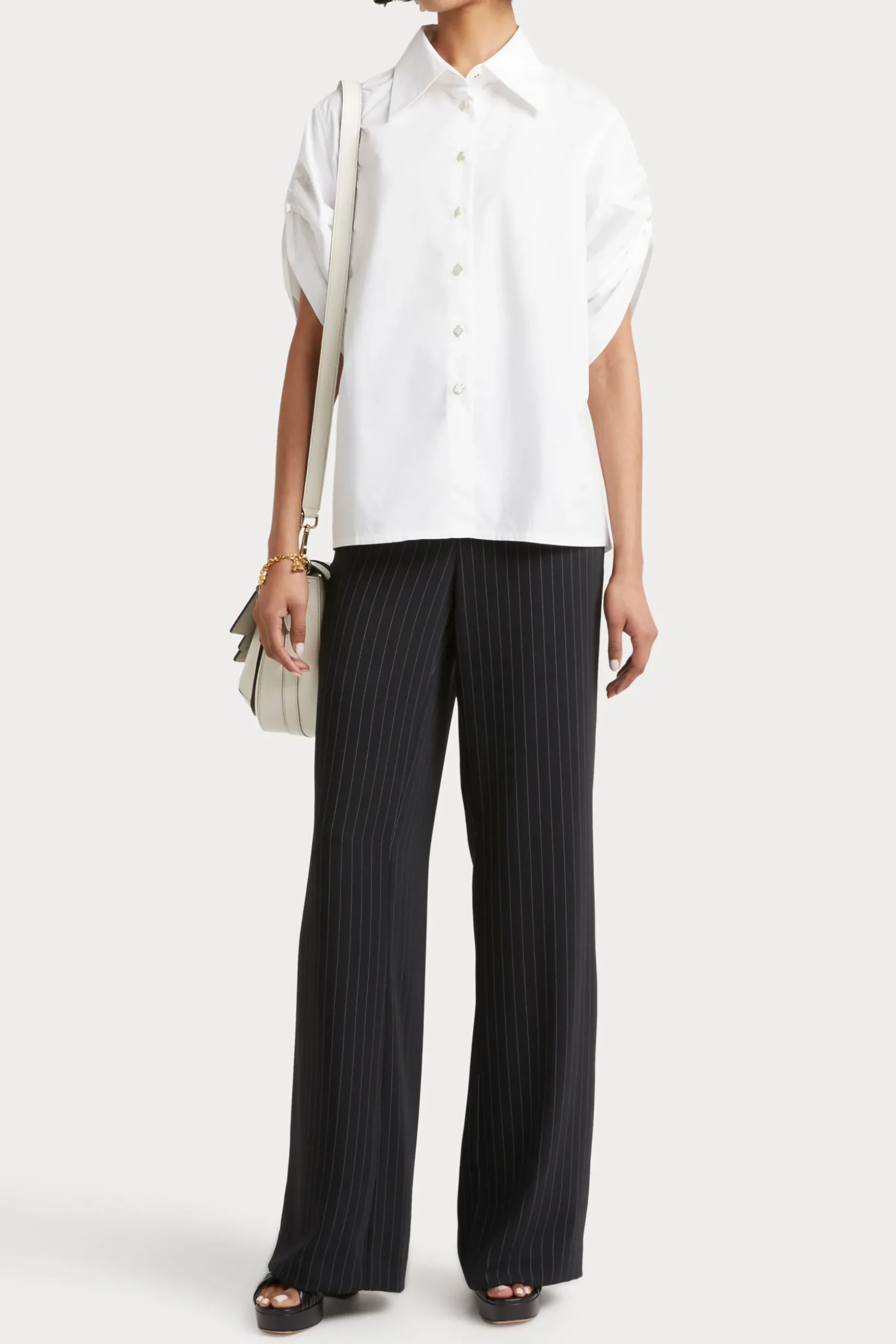 |Collar and collar stand |Button down with clove buttons down the CF |Boxy fit with oversized short sleeves |Sleeves feature a button tab to push up the sleeves Composition 100% Cotton poplin Care Dry clean Studio model is 177cm tall and wears a AU8