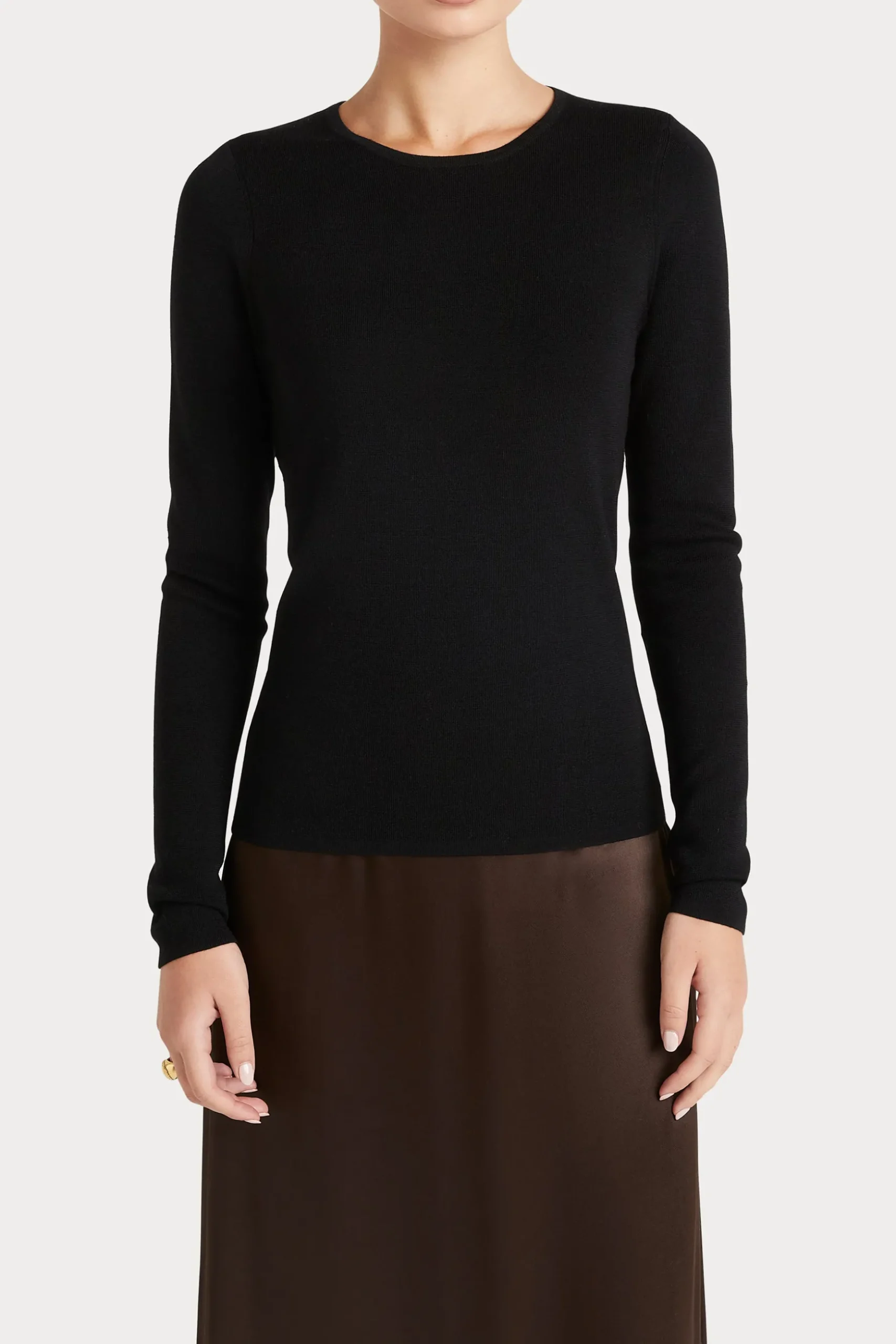 Description |Crafted in 100% Merino wool |Slim fit |Contrast binded rib detail along neckline |Crew neckline |Long sleeves Composition 100% Extra fine merino wool Care Cold hand wash Studio model is 176cm tall and wears an AU8
