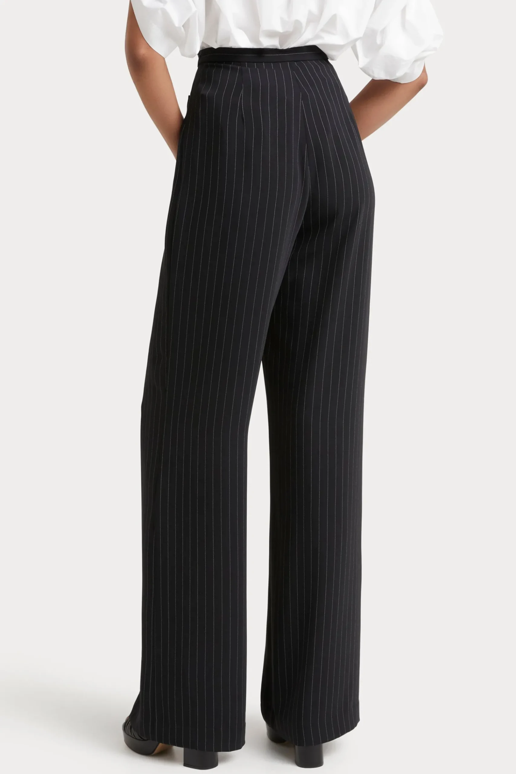 |High waisted |Flat front with faux welt pockets |Wide, flared legs |Side zip opening |Full length Composition 99% Polyester 1% Viscose Care Dry clean Studio model is 177cm tall and wears a AU8