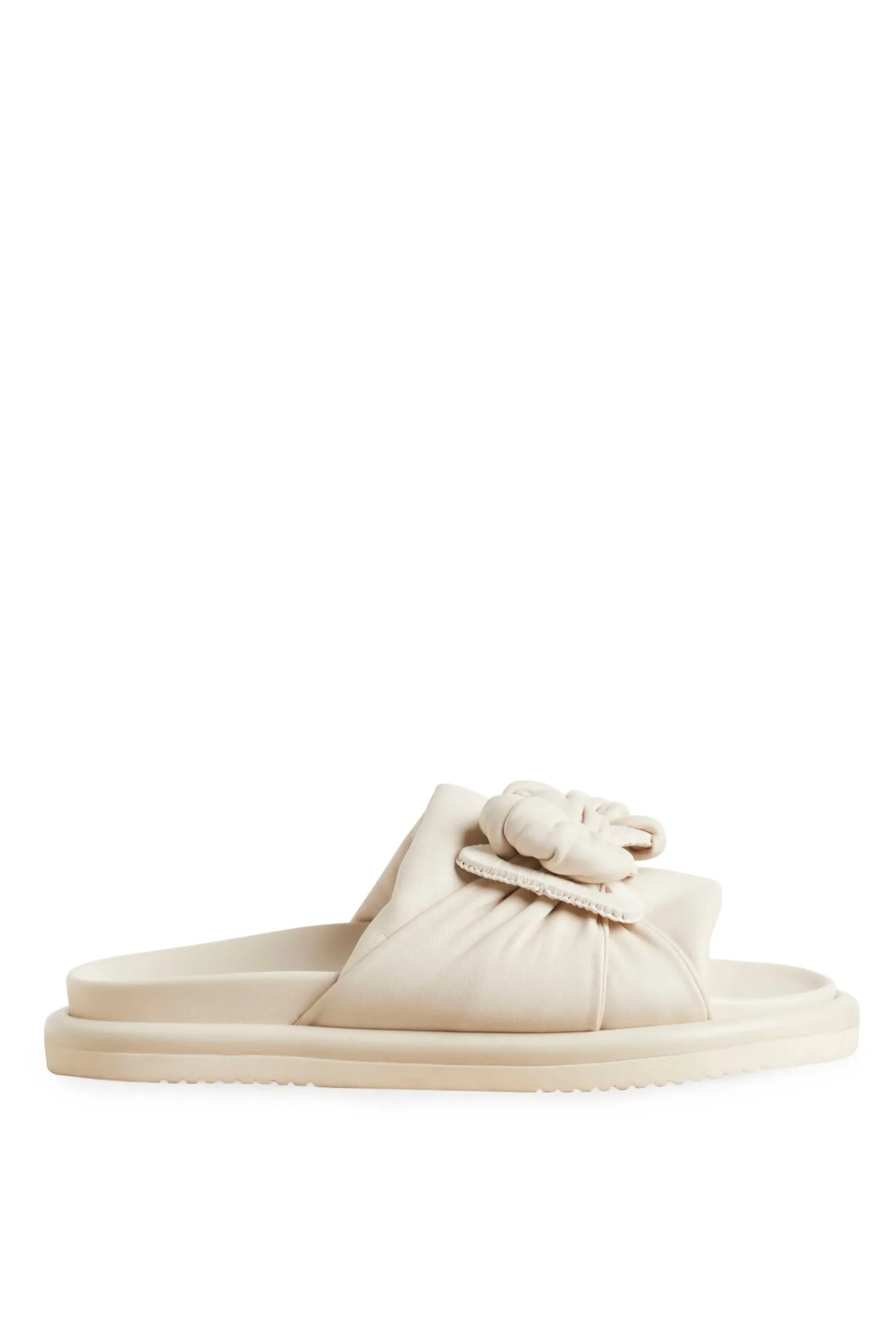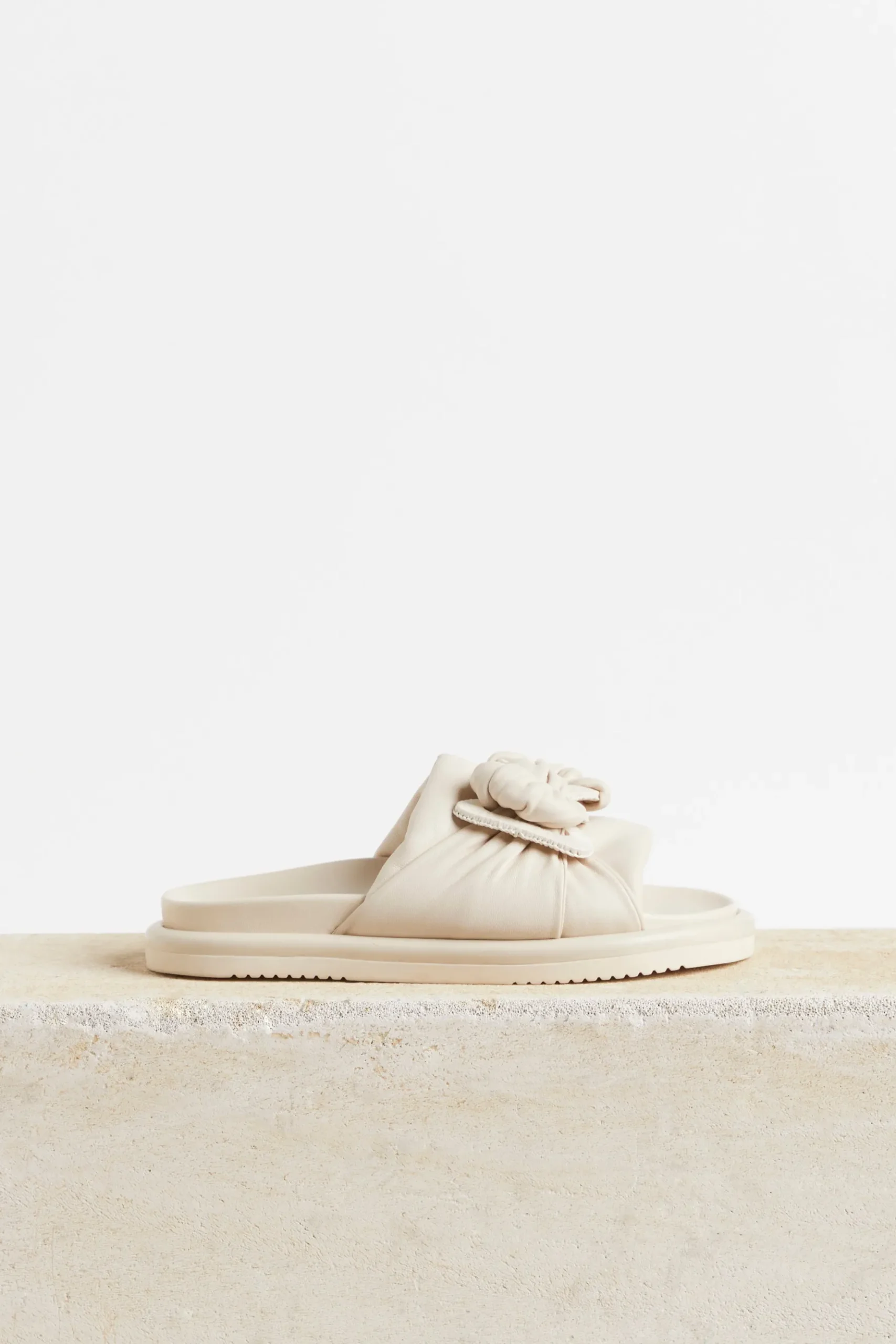 With its twisted detail on the upper, padded front strap, and comfortable footbed, the Husk SOPHIA SLIDE is perfect for both style and comfort. Slip into this sophisticated and exclusive slide, and elevate your look with elegance and grace. Available in Black and Nude. Composition: Leather Upper, Rubber Sole