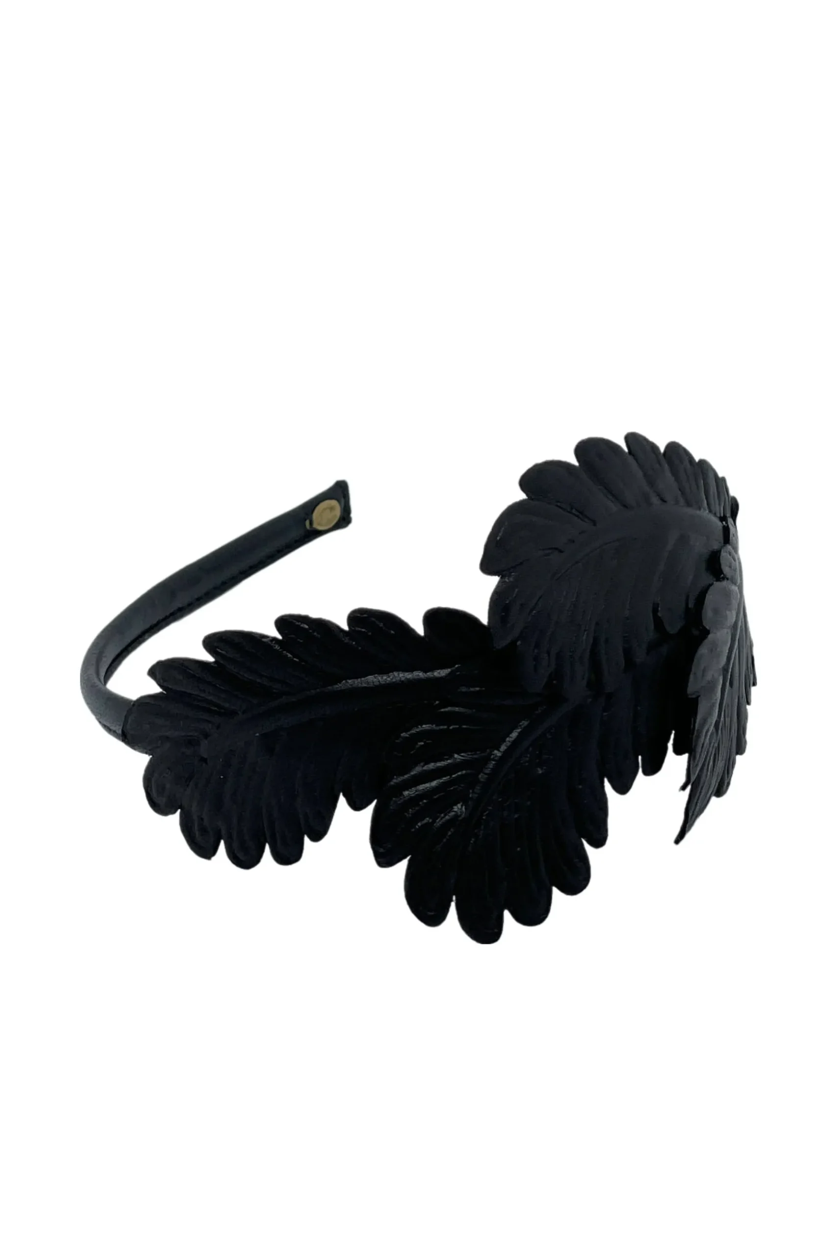 Look effortlessly beautiful in the Jennifer Ouellette Lea Headband. Crafted from soft velvet, the Lea Headband features leaves that delicately overlap each other. Care instructions: Use a slightly damp wipe to keep your headband looking fresh.