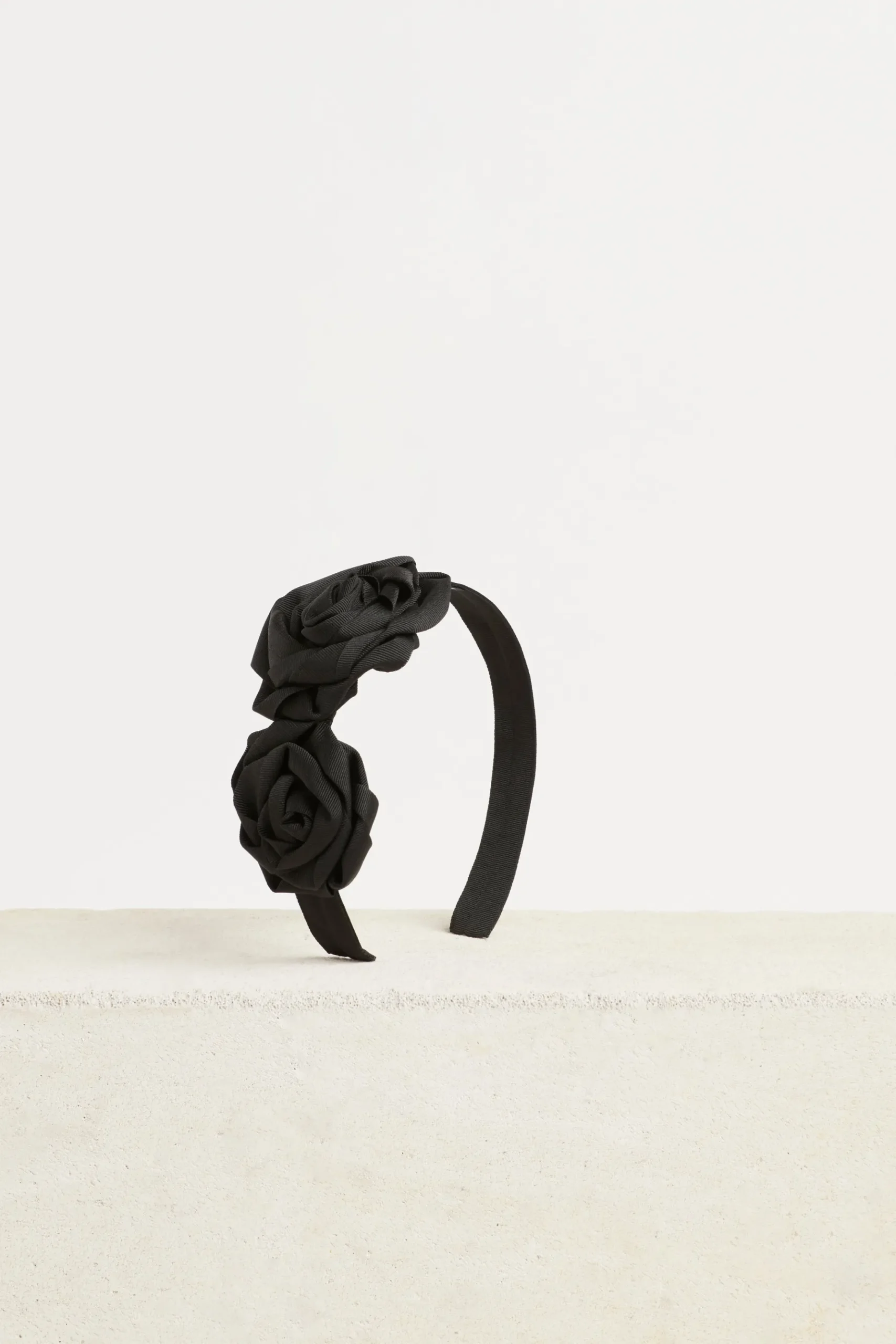 Look effortlessly beautiful in the Jennifer Ouellette Rosa Headband. Crafted from soft satin, the Rosa Headband features two beautiful roses. Composition: 100% Satin Care instructions: Use a slightly damp wipe to keep your headband looking fresh.
