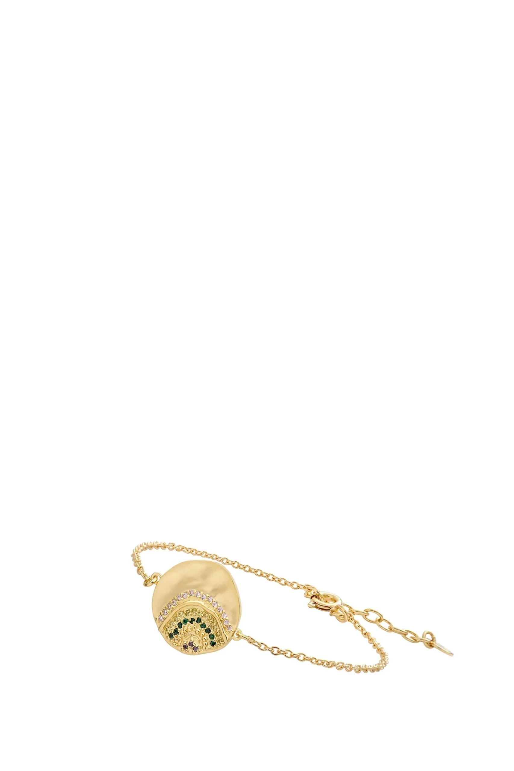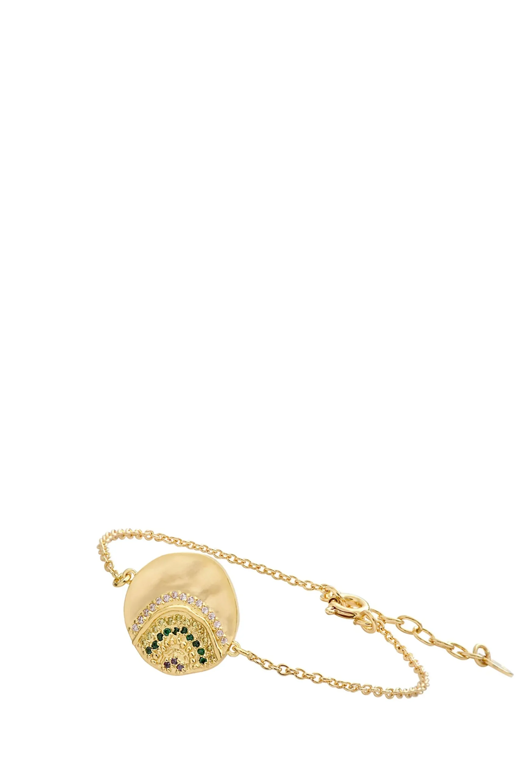 The Alice Bracelet feature a matte medallion, striated and paved with rainbow zircons. Composition: Sterling Silver / Gold Plate / Zircons Care instructions: Avoid wearing jewellery whilst swimming or bathing. Avoid having jewellery come into any contact with chemicals. Handcrafted in Paris, France.