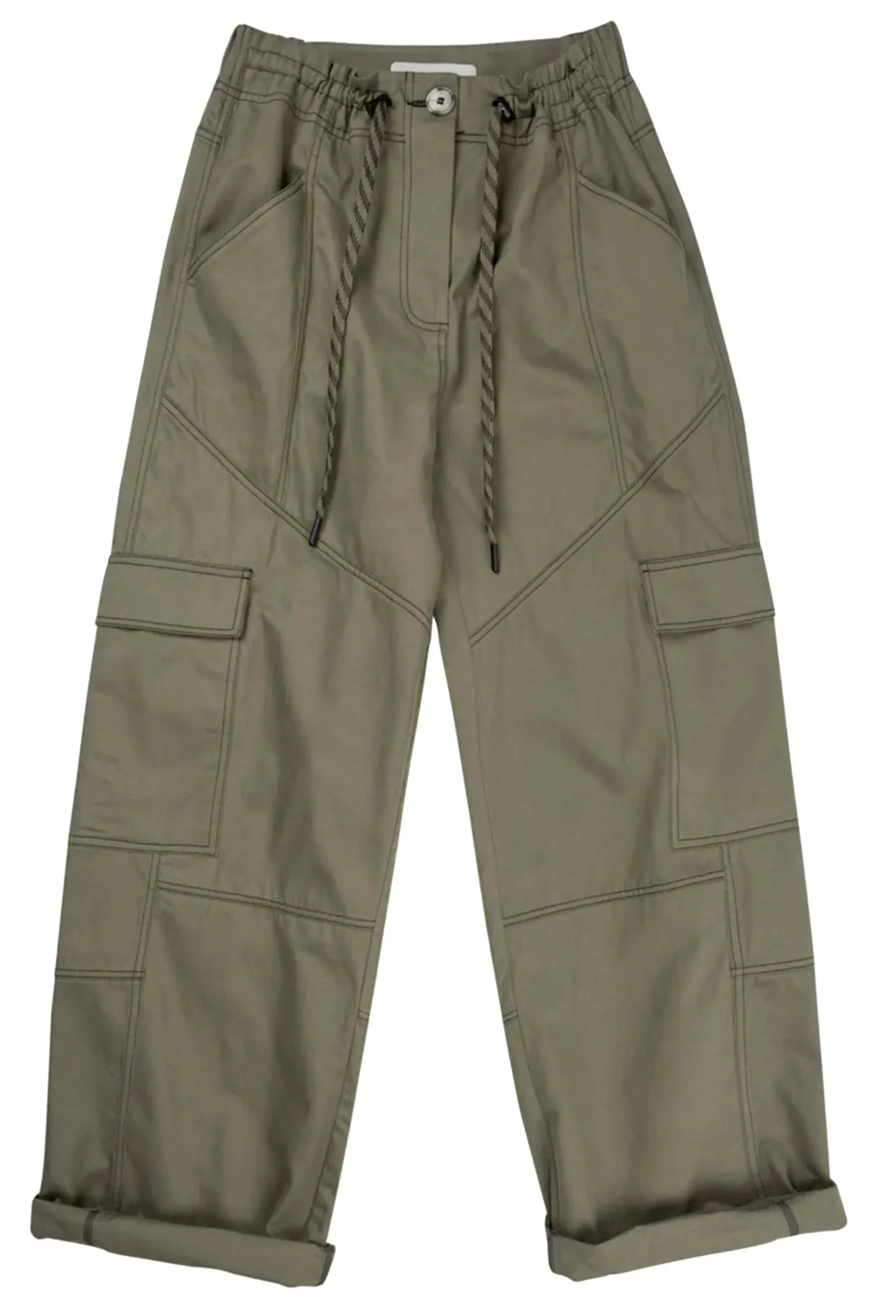 Cargo pants, designed for a loose fit, made in 100% cotton. The pants have pockets along the legs, beautiful decorative army coloured stitching and side slit pockets. Composition: 100% Cotton Care instructions: Refer to the care label attached to garment for detailed washing instructions. Models wear a size 36.