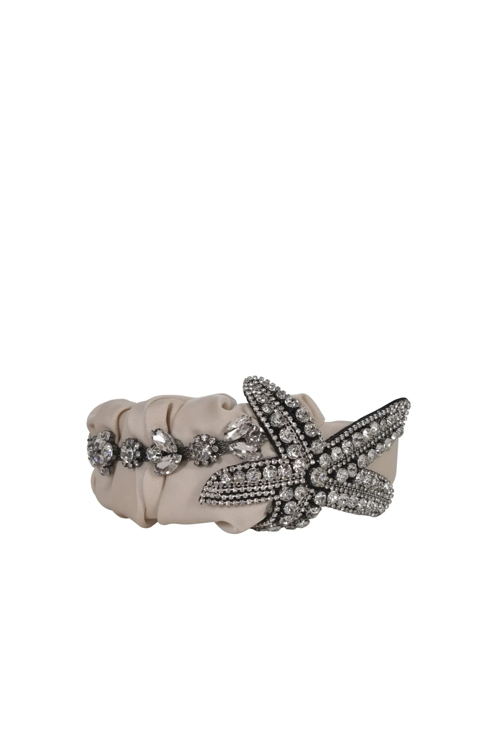 The Starfish Headband features crystals set on a silk satin fabric and a beautiful ruched design. Care instructions: Given the handmade, unique nature of our product each headband will vary slightly. The best way to clean your headband is with a damp cloth or baby wipe.