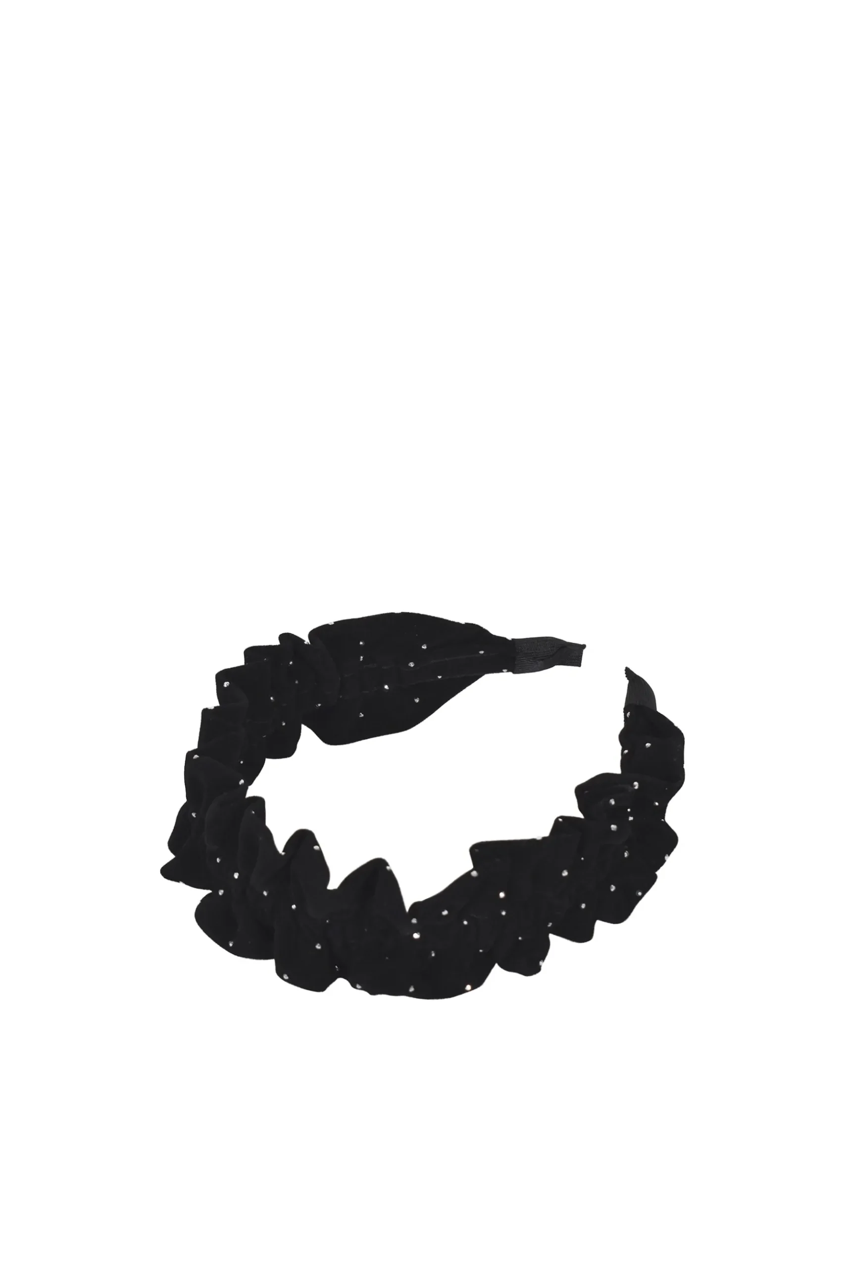 The Velma Headband features petit diamantes placed on a ruched velvet band. Care instructions: Given the handmade, unique nature of our product each headband will vary slightly. The best way to clean your headband is with a damp cloth or baby wipe.